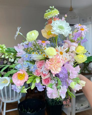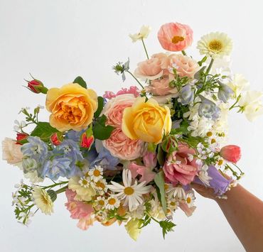 Our bouquets are a floral abundant, garden mix of fresh flowers based on your desired colour scheme, with a